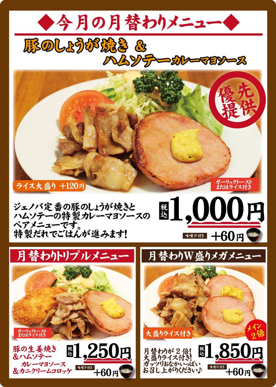 12月の月替わりメニューです来店お待ちしています。月替わりメニユー1050円トリプルメニュー1350円に変更しました。